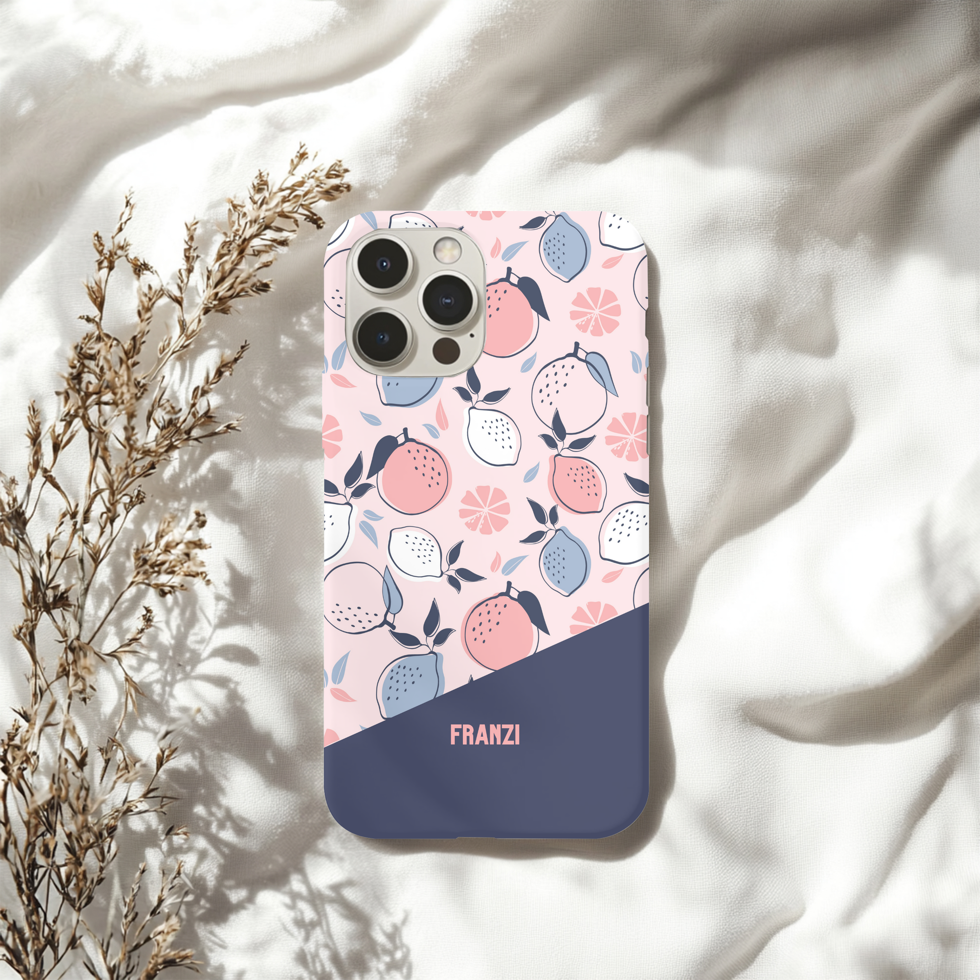 Personalisierte Handyhülle im Zitrusdesign mit Name – Schütze dein Smartphone stilvoll!